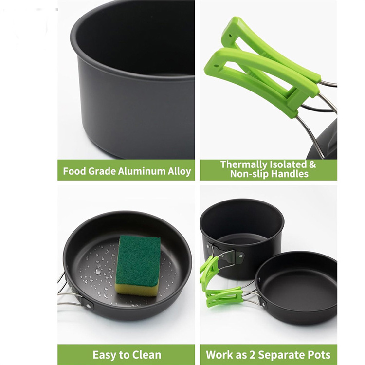 キャンプストーブ、たき火、ポータブルグリルなど、さまざまな熱源に適しています。鍋やフライパンは、お湯を沸かしたり、揚げ物をしたりするまですべてを簡単に処理します。