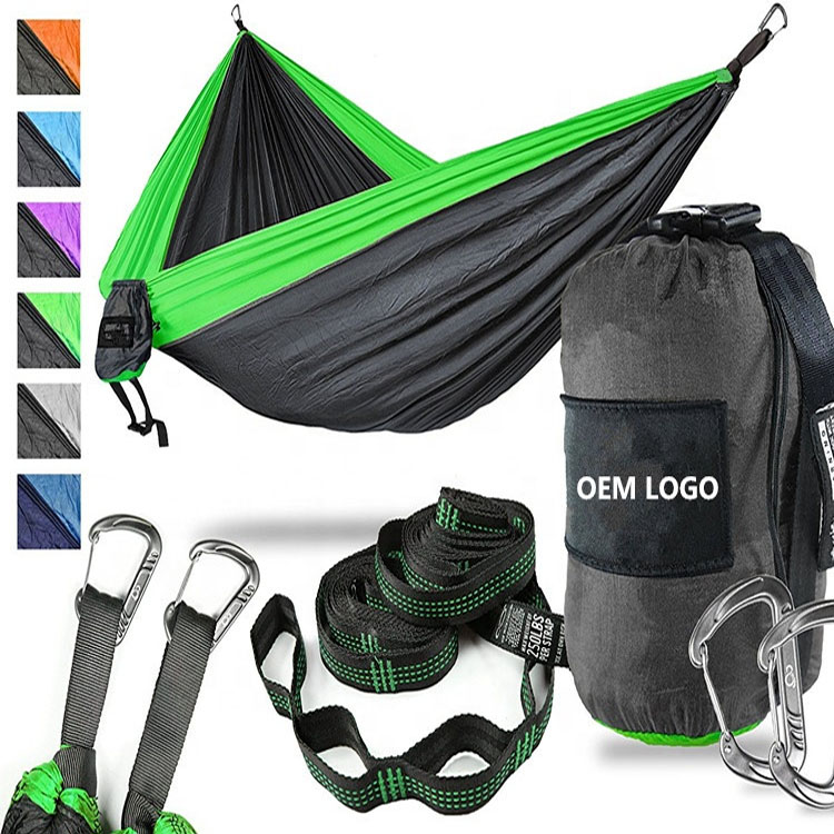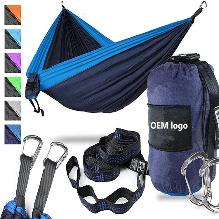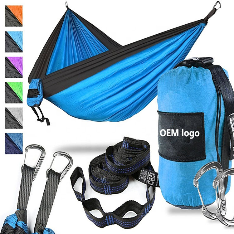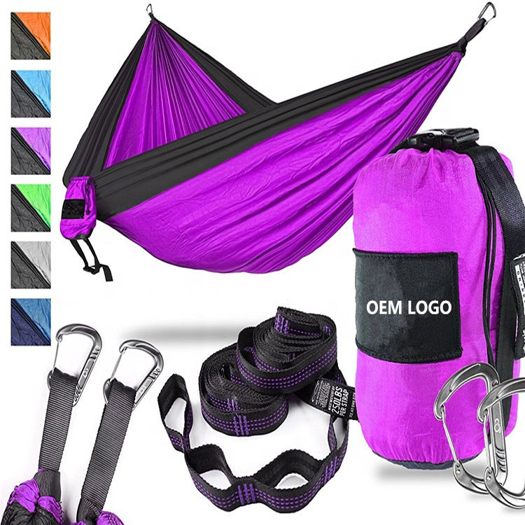 バックパッキング旅行ダブルパラシュートキャンプハンモック。アウトドアの快適さと冒険のためのプレミアムチョイス。この高品質のパラシュート ハンモックは、1 人用と 2 人用の両方で使用できるように設計されています。バックパッキングや旅行に最適で、耐久性のある素材と優れた携帯性を組み合わせて、忘れられないアウトドア体験を実現します。