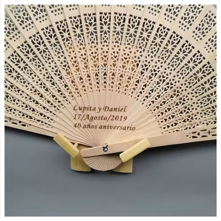 竹ヴィンテージ誕生日プレゼント折りたたみ木製ハンドファン。カスタム彫刻竹ハンドヘルドファン。— エレガント、折りたたみ可能、軽量、ヴィンテージの魅力。結婚式、パーティー、文化的なイベントに最適です。ロゴやメッセージを入れてカスタマイズして、時代を超越した実用的な装飾ギフトにしましょう。