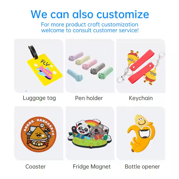 環境に優しく、無毒の軟質PVCゴムで作られたこれらのキーホルダーは、耐久性と柔軟性の両方を備えています。ひび割れたり、色あせたり、変形したりすることがなく、バッグ、バックパック、キーホルダーなどの日常使用に最適です。