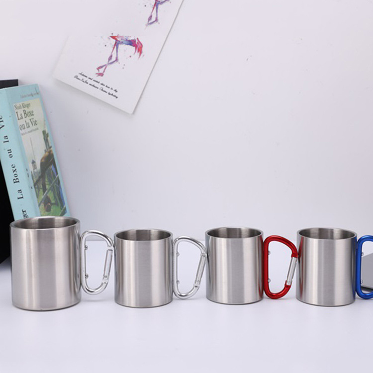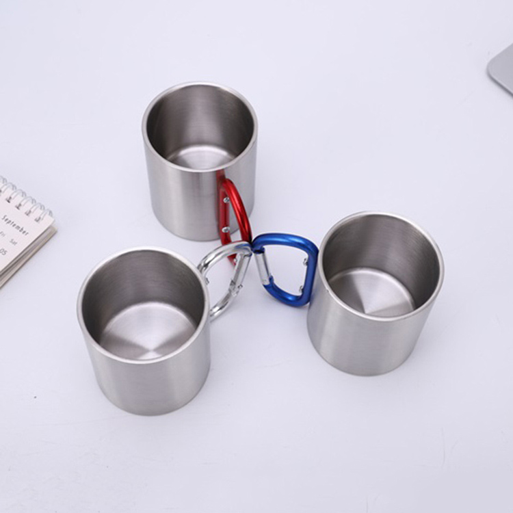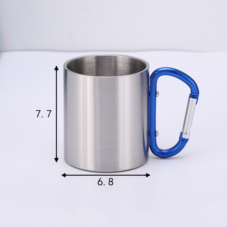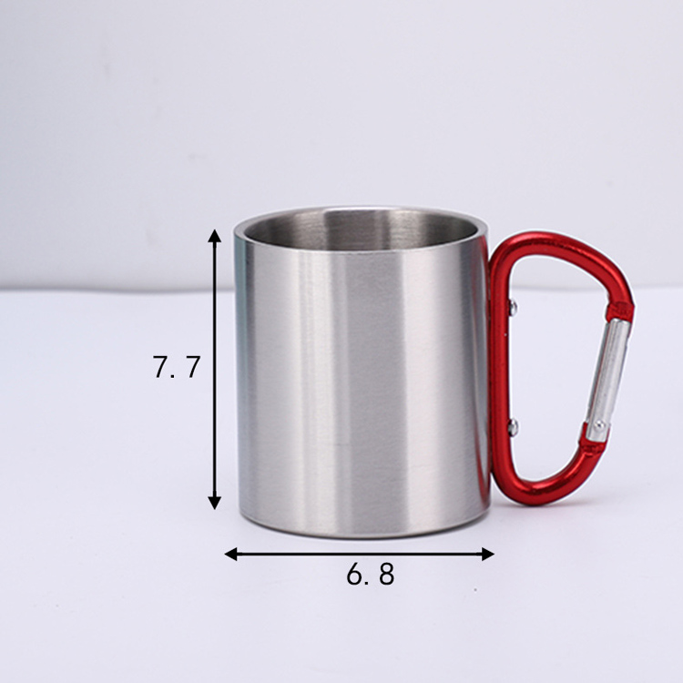 キャンプ用二重壁ステンレススチールトラベルタンブラーフラスコ。アウトドアアドベンチャーのための究極のポータブルサーマルソリューション。この220mlステンレススチールタンブラーは、二重壁真空断熱材と便利なカラビナハンドルが特徴です。旅行に最適で、冷たい飲み物と温かい飲み物の両方に最適な温度を維持します。