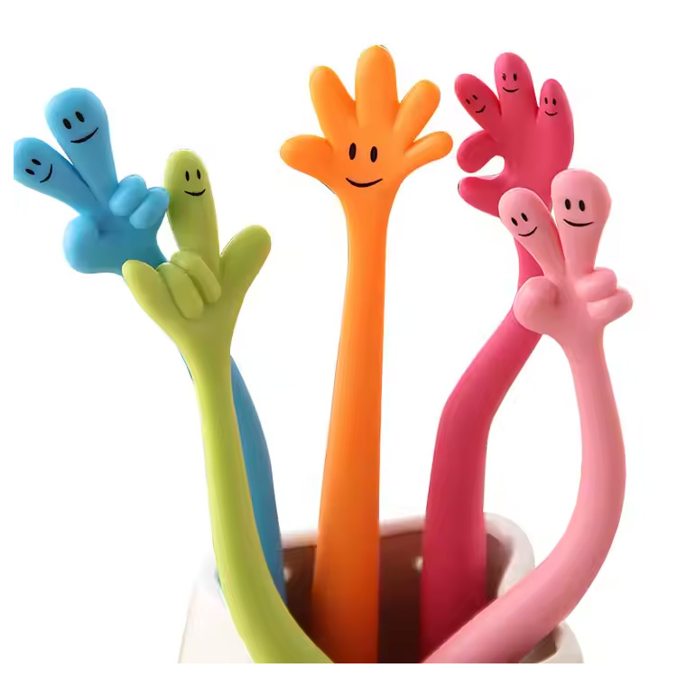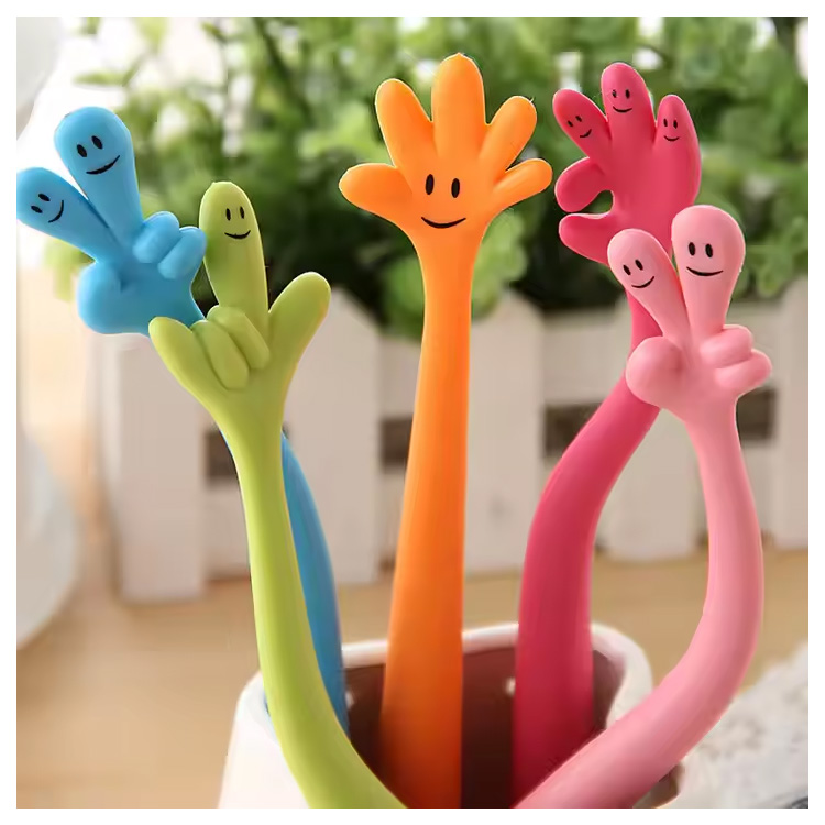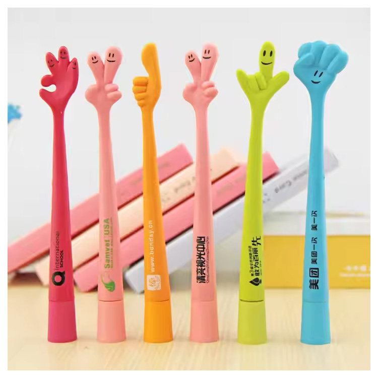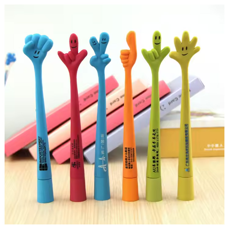 キュート&ラブリーカスタムロゴプリント1.0mmプラスチックボールペン。カスタムロゴプリントが施された楽しくてカラフルな指型ボールペン。クリエイティブな 1.0 mm 筆記具は、子供、プロモーション、パーティー、学校へのギフトに最適です。耐久性に優れたプラスチックボディ、スムーズなインクフロー、誰もが気に入るキュートなデザイン。