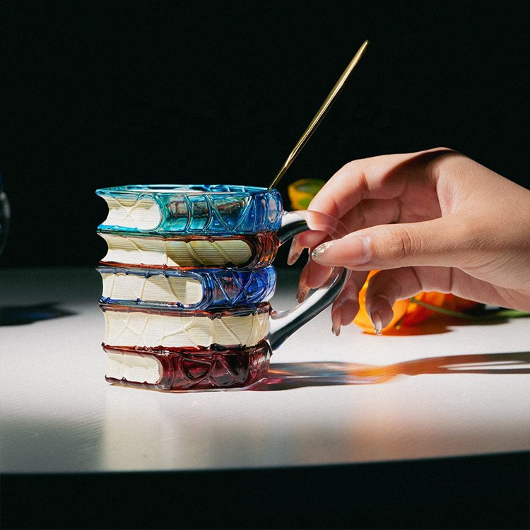 手描きガラスコーヒーカップ 3D ペイントブックコーヒーマグ