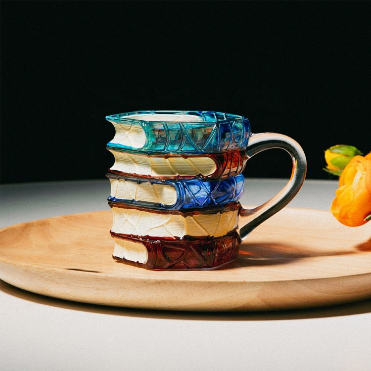 このクリエイティブなコーヒー カップは、積み上げられた本を模した見事な 3D デザインが特徴で、芸術性と機能性が完璧に融合しています。質感のある本の背表紙からリアルなページに至るまで、あらゆる細部が、本の愛好家やコレクターを同様に喜ばせるために細心の注意を払って作られています。