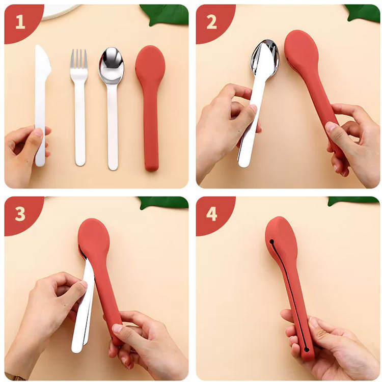 高品質キャンプ旅行カトラリーセットシリコンポータブル