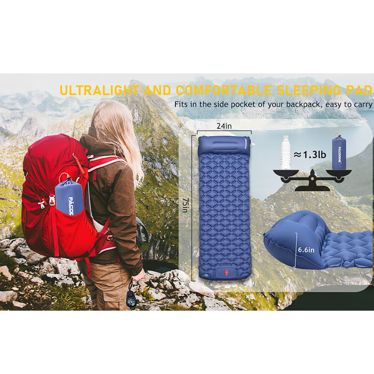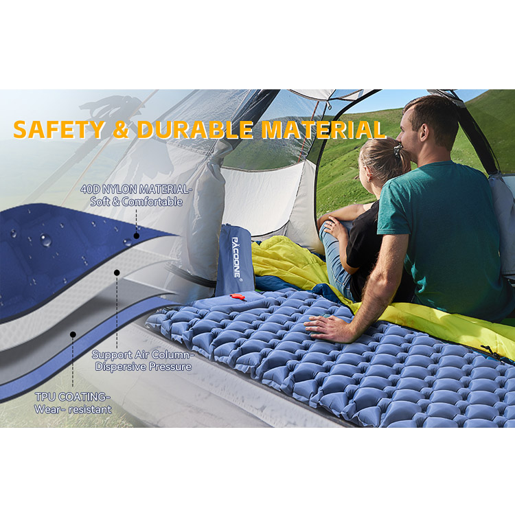 軽量ナイロン素材の折りたたみキャンプテントスリーピングパッド。アウトドアアドベンチャーのための究極のポータブル睡眠ソリューション。この超軽量インフレータブルマットレスは、ワンプレスで膨張し、統合された枕のデザインが特徴です。耐久性のあるナイロン素材で作られており、ハイキングやキャンプに優れた快適さを提供し、どこでも安らかな夜を保証します。