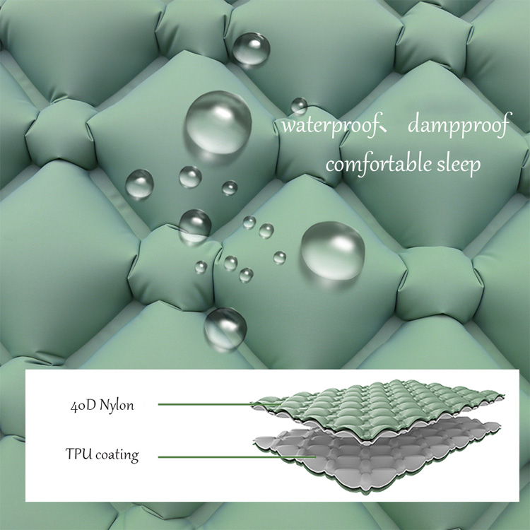 TPU ラミネート加工を施した 30D リップストップ ナイロンで作られており、さまざまな屋外条件下でも一晩中優れた耐引裂性と信頼性の高い空気保持力を提供します。