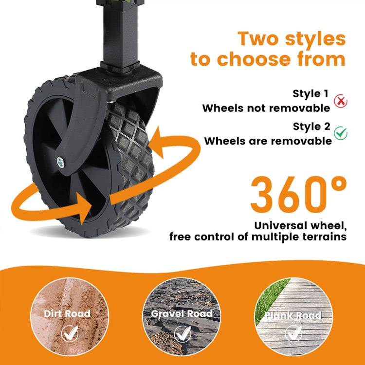 強化鉄フレームと防錆コーティングで構築されたこのユーティリティ カートは、最大 150 kg の荷重をサポートしながら優れた耐久性を維持し、さまざまな地形で信頼できるパフォーマンスを提供します。