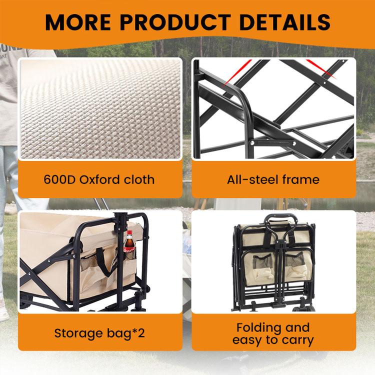 低価格の折りたたみ式折りたたみユーティリティ カート ワゴン鉄素材。アウトドア アドベンチャーのための究極のお手頃な輸送ソリューション。この折りたたみ式ユーティリティカートは、耐久性のある鉄構造と簡単に折りたためるデザインが特徴です。登山旅行、ピクニック、ビーチでの外出、キャンプ、ガーデントレイルでの使用に最適です。