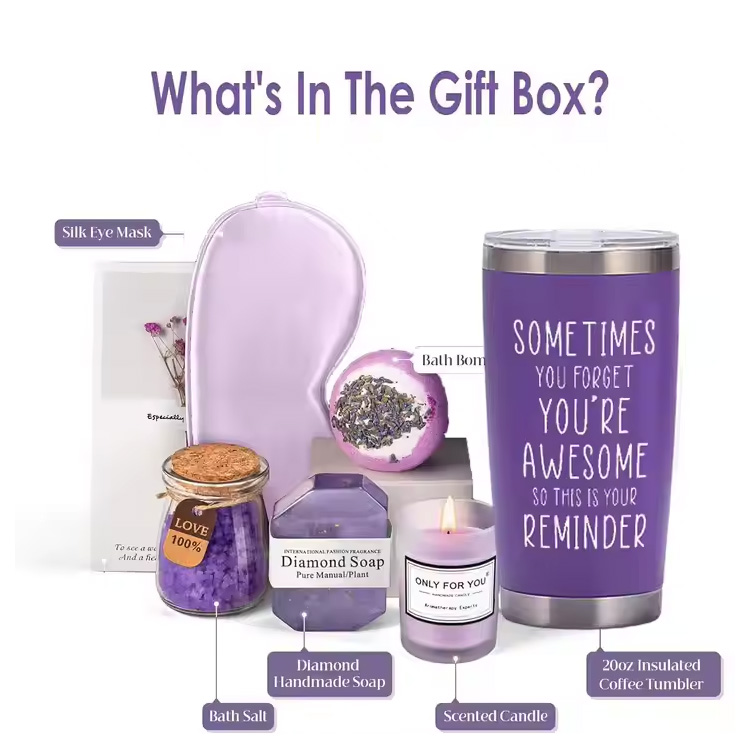 各 Lunaire ギフト ボックスには、ステンレス製のタンブラー、アロマセラピー キャンドル、ダイヤモンド型の石鹸、ドライフラワー、グリーティング カードなど、美しくコーディネートされたアイテムが含まれています。このすぐに使えるギフト セットは時間を節約しながら、あらゆる機会に完全で心のこもった体験をお届けします。