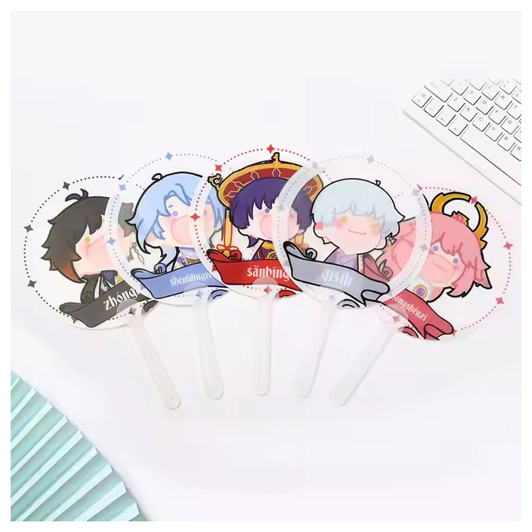 ミニアニメスタープラスチック透明防水ハンドファン。カスタムアニメ透明プラスチックハンドファン— 軽量で防水性に優れ、お気に入りのキャラクターやロゴをプリントできます。イベント、コンサート、プロモーション、お土産に最適です。おしゃれに涼しく過ごすための楽しくて実用的な方法。