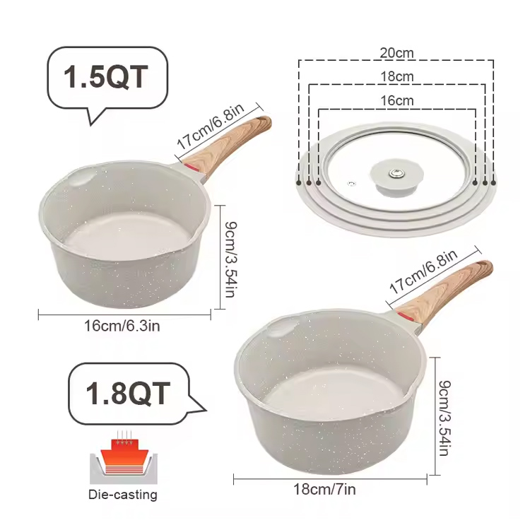 1.5QTと1.8QTの容量を備えたこのミニポットセットは、寮、アパート、またはキッチンスペースが限られている家庭に最適です。小さなバッチを調理したり、スープを温めたり、便利なサイドディッシュを準備するのに最適なサイズです。