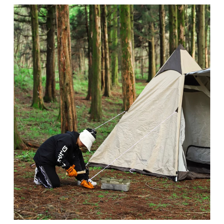 中型シェルターに包括的な固定を提供する 4 本の頑丈なステークが含まれており、バランスの取れた安定性とあらゆる方向からの耐風性を確保します。