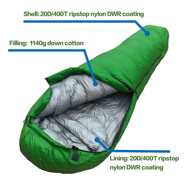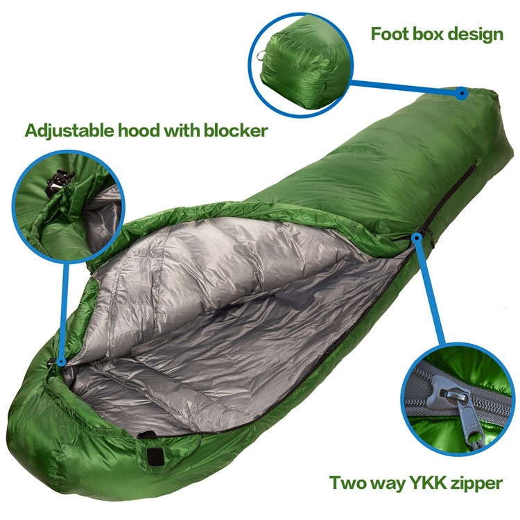屋外用超軽量ポータブル寒冷地用ミイラ寝袋。大自然の冒険のための究極の寒冷地睡眠ソリューションです。この超軽量ミイラ寝袋は、最大限の暖かさのためのプレミアムダックグースダウン断熱材を採用しています。本格的なキャンプ向けに設計されており、卓越した熱効率と最小限のパック重量を兼ね備えています。