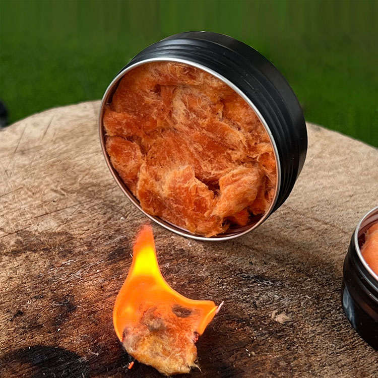 防水ワックスと鉱物ベースの消火泥を特別に配合したこの火口は、雨、雪、または高湿度にさらされた場合でも迅速な着火を実現し、重要な生存状況で確実な着火を保証します。