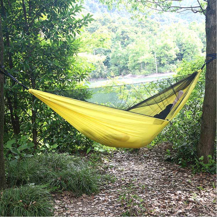 エッジが強化された210Tポリエステル蚊帳と70Dナイロンハンモック本体が特徴で、通気性のある昆虫保護と耐久性のある耐荷重能力の完璧なバランスを作り出しています。