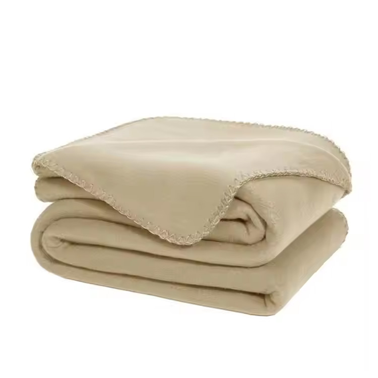 プロモーションソリッドカラーエッジソフトベッドフリーススローブランケット