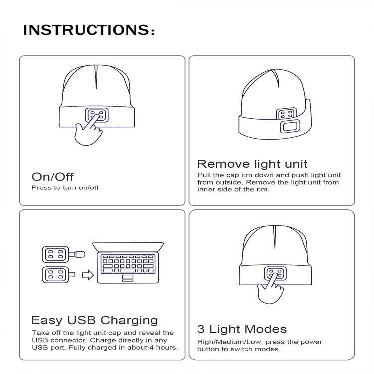 この革新的な LED キャップは、明るく焦点を絞ったヘッドランプと快適なビーニー帽を組み合わせたもので、別個のヘッドランプを必要とせずに、夜間のアクティビティ、修理、または読書に完全にハンズフリーの照明を提供します。