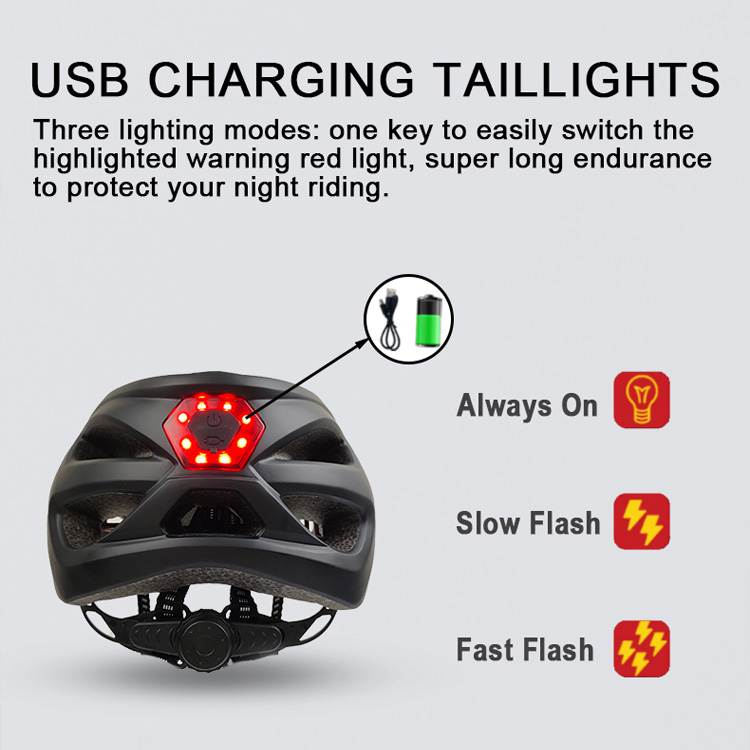 充電式テールライト通気性安全ロードバイクヘルメット。現代のサイクリングのための究極のカスタマイズ可能な安全ソリューション。この大人用デュアル スポーツ ヘルメットは、統合された充電式 LED テールライトと高度な通気性デザインを備えています。保護バイザーを装備し、ロードバイクアドベンチャーの視認性と快適性を向上させます。