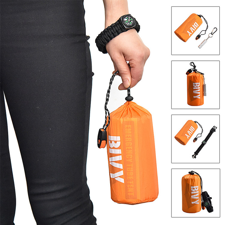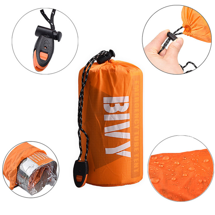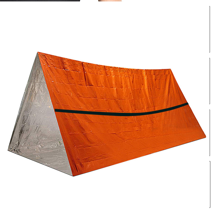 アウトドアハイキングやキャンプ用の防水緊急テント。アウトドアアドベンチャーに欠かせない緊急避難所。このポータブル 2 人用テントは、完全な防水保護と軽量のアルミニウム ポールを備えています。自動セットアップ設計により、ハイキングやキャンプの緊急時に即座にサバイバルセキュリティを提供します。